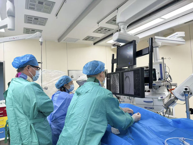 10月2日凌晨,一名因外伤所致全身多发骨折及合并主动脉夹层的患者被紧急送入我院急诊。检查显示,患者锁骨、骨盆及下肢多发骨折,最为凶险的是合并主动脉夹层,病情危重,随时可能因主动脉破裂造成死亡。心脏血管外科团队迅速启动多学科会诊,开启绿色救治通道,完善术前检查。在麻醉科及介入手术室的全力配合下,科室负责人赵永波带领手术团队紧急为患者实施胸主动脉覆膜支架置入术及微打孔技术锁骨下动脉重建术,手术十分顺利,生命体征平稳,为后续治疗奠定坚实基础。救治过程中,手术团队、麻醉团队、护理团队及重症监护团队始终以高度的责任心和精湛的医术为患者保驾护航。