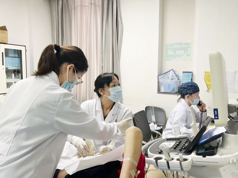 科室不仅高效保障常规超声检查,全力实现“当日预约、当日检查”,用便捷服务优化患者就医体验;更贴心开通床旁检查绿色通道,为行动不便的急重症患者送去及时诊疗;尤其在危急时刻,科室接连为急性胆囊炎、大量心包积液等危重患者开展超声引导下介入治疗,以精准操作快速缓解病情,成为生命通道的坚实守护者。