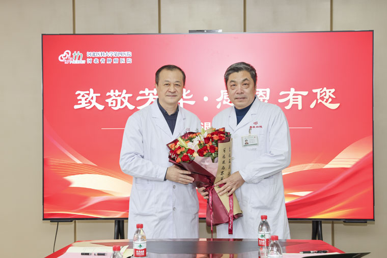 党委书记李立平代表医院党委和全体职工,向退休同志数十年如一日的辛勤付出致以衷心感谢。他指出,退休职工多年来扎根岗位、深耕不辍,以“拿得下、守得住”的专业担当筑牢医院服务根基,他们的敬业精神与卓越业绩已成为医院发展的宝贵财富。他强调,目前医院正处于高质量发展关键阶段,全国公立医院绩效考核持续领跑全省,国自然项目获批6项、河北省数智病理中心成功落户、AI病理诊断大模型应用临床、东院区医疗综合楼顺利启用等成果,离不开一代代四院人的接续奋斗,更饱含退休职工的无私奉献。希望老同志在享受退休时光的同时,继续关注医院发展,欢迎以合适方式发挥专长,相关部门落实好服务保障工作,让退休职工切实感受“家”的温暖。