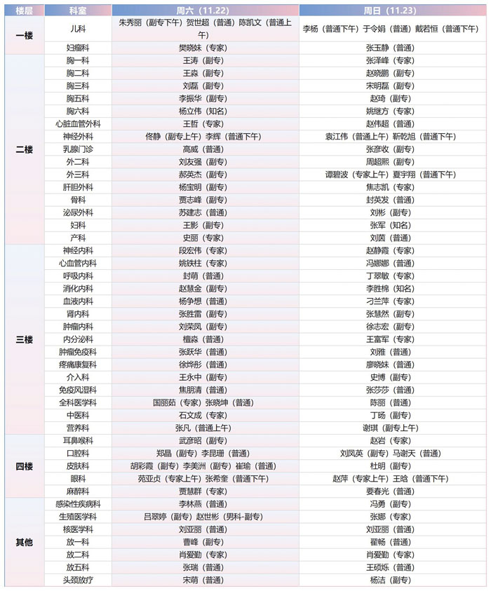 注:具体以实际出诊为准。