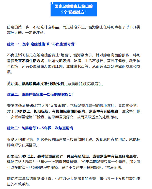 收藏!国家卫健委主任给出的5个“防癌处方”,尤其最后一条关乎全家