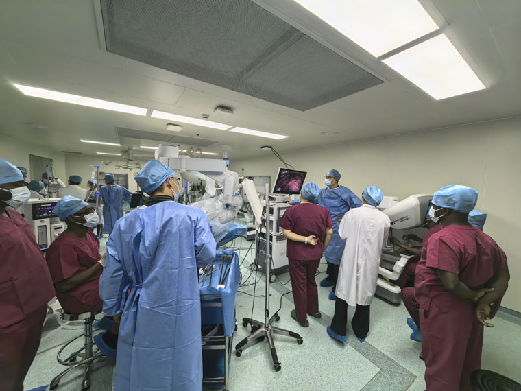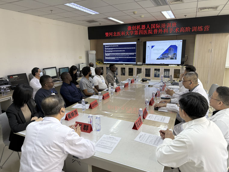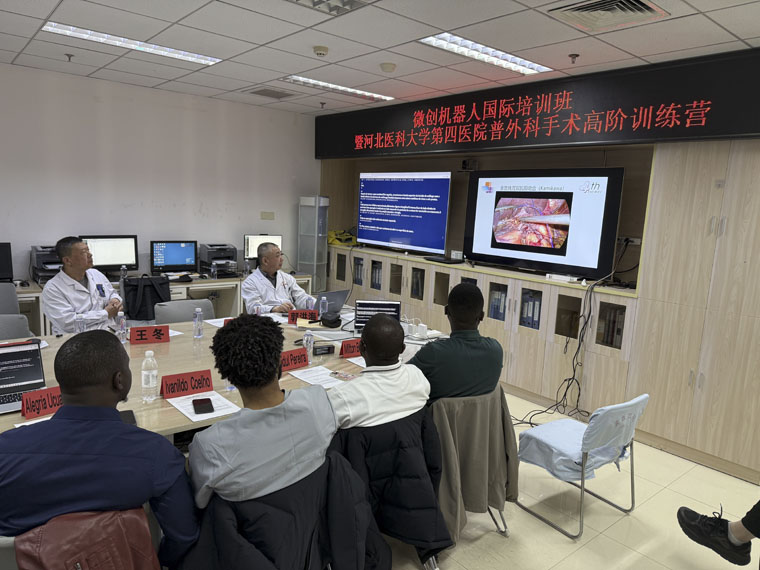 近日,我院外三科、外二科与上海微创医疗机器人(集团)股份有限公司联合举办两期国际手术机器人高阶培训班,来自安哥拉共和国和白俄罗斯的两批专家共10人,先后来院开展机器人手术临床培训、手术观摩及学术交流。此次系列培训既是贯彻国家高质量共建“一带一路”、推进健康丝绸之路建设和构建人类卫生健康共同体部署的具体实践,也是落实河北省深化高质量共建“一带一路”,打造对外开放新高地要求的务实举措,充分彰显了我院胃肠外科依托机器人手术优势,深化国际交流合作、彰显行业担当的主动作为。
