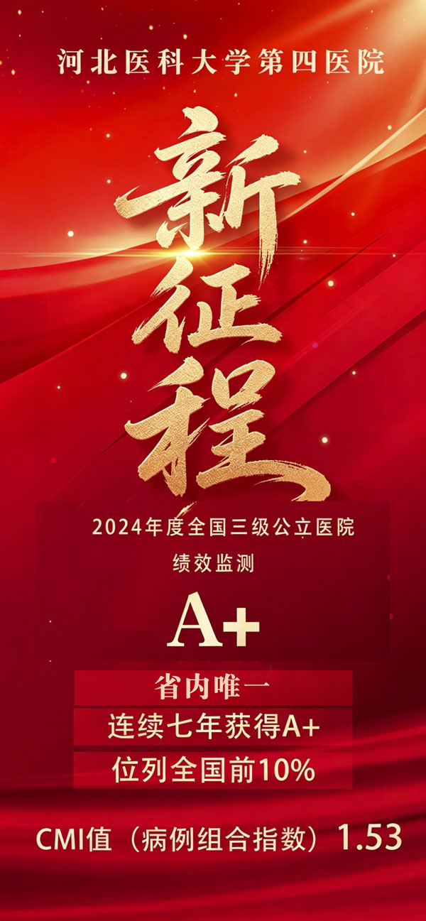 连续七年A+ 全国前10%!河北医大四院2024年度三级公立医院绩效监测再获佳绩